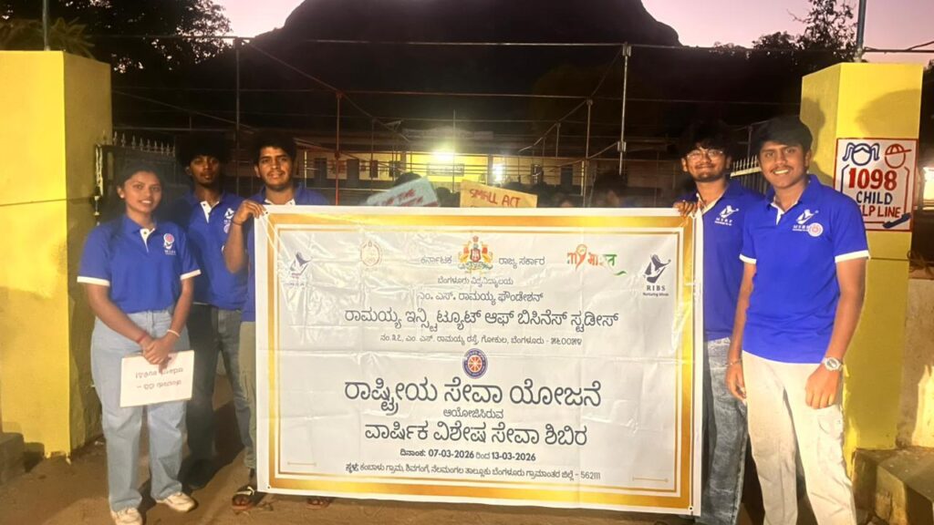 RIBS conducted annual NSS camp at Kambalu village Nelamangala talk Bangaluru rural. Activities on Day 1 Inauguration followed by team building . Camp was inaugurated by the Headmaster of the Shri Vidyaranya Desikendra Rural school of Kambalu village