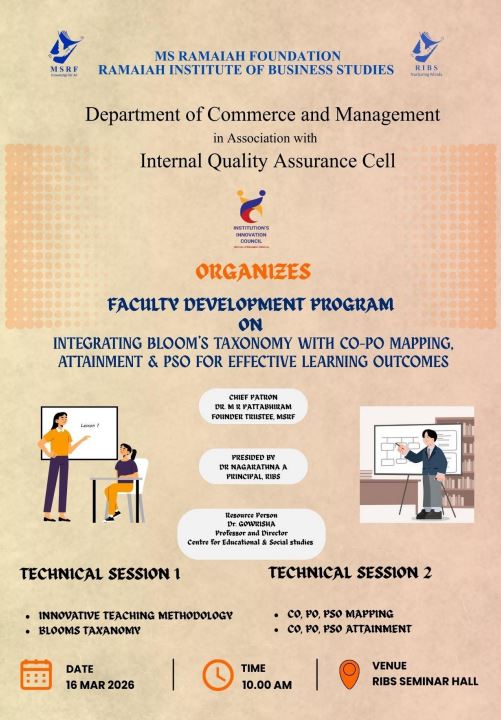 Ramaiah Institute of Business Studies (RIBS) is a degree college under the aegis of M.S.Ramaiah Foundation and affiliated to Bengaluru University